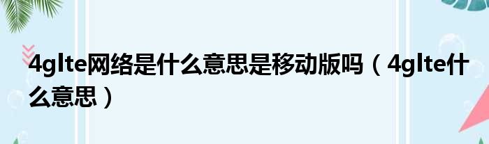 4glte网络是什么意思是移动版吗(4glte什么意思)