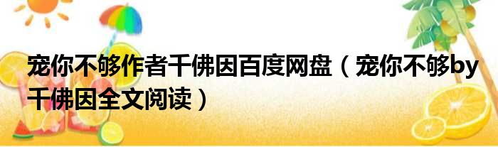 导读 大家好,今天小六子来为大家解答以下的问题,关于宠你不够作者千佛因百度网盘,宠你不够by千佛因全文阅读这个很多人还不知道,现在让我们一