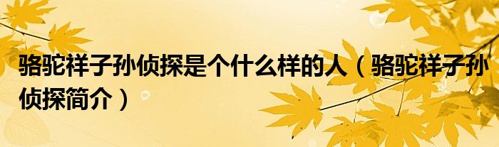 骆驼祥子孙侦探是个什么样的人(骆驼祥子孙侦探简介)