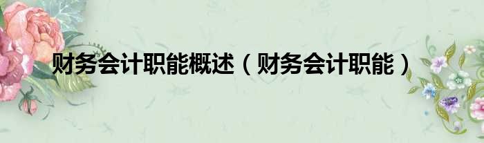 导读 大家好,今天小六子来为大家解答以下的问题,关于财务会计职能概述,财务会计职能这个很多人还不知道,现在让我们一起来看看吧!1、对会计职