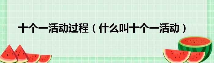大家好,今天小六子来为大家解答以下的问题,关于十个一活动过程,什么叫十个一活动这个很多人还不知道,现在让我们一起来看看吧!