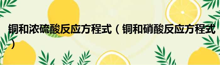 铜和浓硫酸反应方程式(铜和硝酸反应方程式)