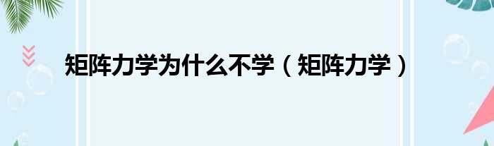 大家好,今天小六子来为大家解答以下的问题,关于矩阵力学为什么不学,矩阵力学这个很多人还不知道,现在让我们一起来看看吧!