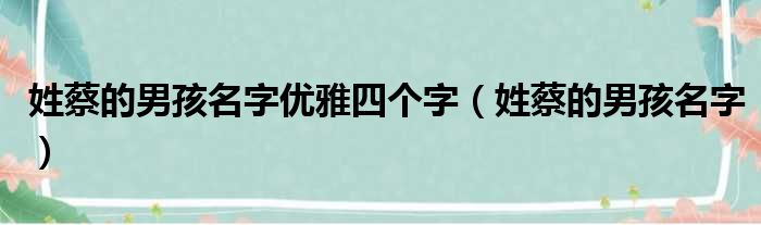 姓蔡的男孩名字优雅四个字(姓蔡的男孩名字)