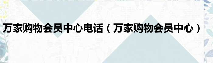 导读 大家好,今天小六子来为大家解答以下的问题,关于万家购物会员中心电话,万家购物会员中心这个很多人还不知道,现在让我们一起来看看吧!1、