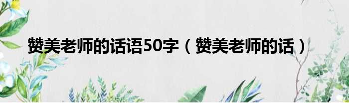 大家好,今天小六子来为大家解答以下的问题,关于赞美老师的话语50字,赞美老师的话这个很多人还不知道,现在让我们一起来看看吧!