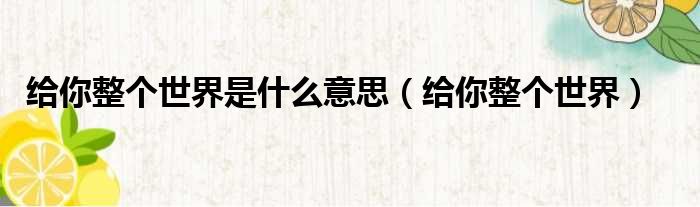 导读 大家好,今天小六子来为大家解答以下的问题,关于给你整个世界是什么意思,给你整个世界这个很多人还不知道,现在让我们一起来看看吧!1、关