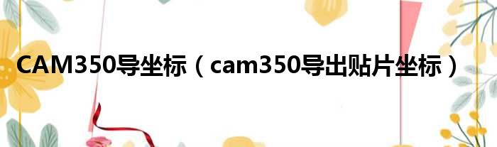 导读 大家好,今天小六子来为大家解答以下的问题,关于CAM350导坐标,cam350导出贴片坐标这个很多人还不知道,现在让我们一起来看看吧!1、用CAM3