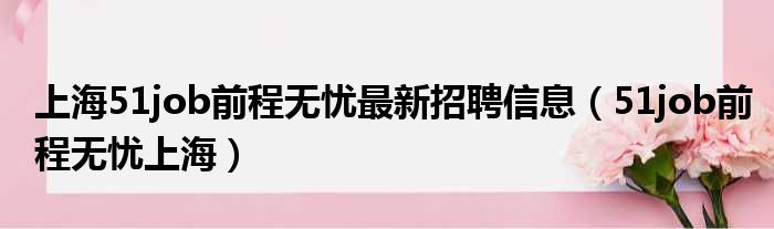 上海51job前程无忧最新招聘信息(51job前程无忧上海)