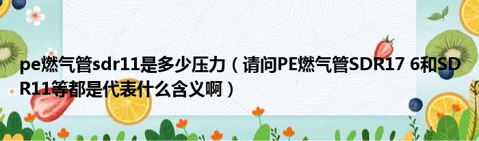 导读 大家好,今天小六子来为大家解答以下的问题,关于pe燃气管sdr11是多少压力,请问PE燃气管SDR17 6和SDR11等都是代表什么含义啊这个很多人还