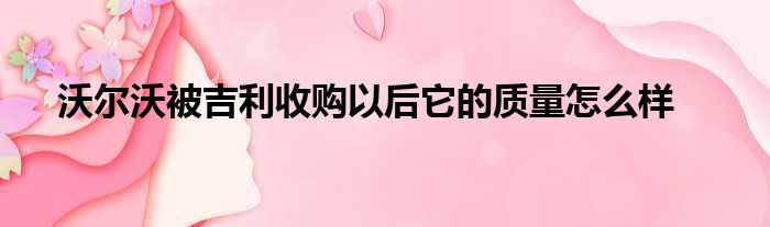 沃尔沃被吉利收购以后它的质量怎么样