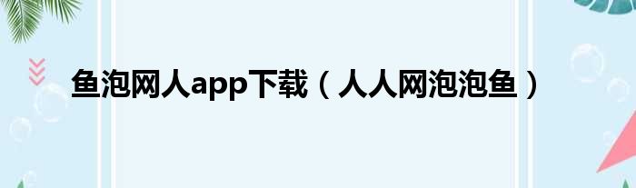 大家好,今天小六子来为大家解答以下的问题,关于鱼泡网人app下载,人人网泡泡鱼这个很多人还不知道,现在让我们一起来看看吧!