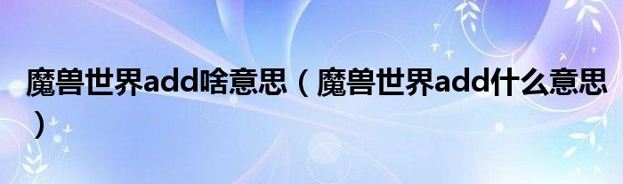 魔兽世界add啥意思(魔兽世界add什么意思)