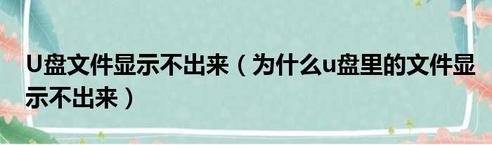 U盘文件显示不出来(为什么u盘里的文件显示不出来)