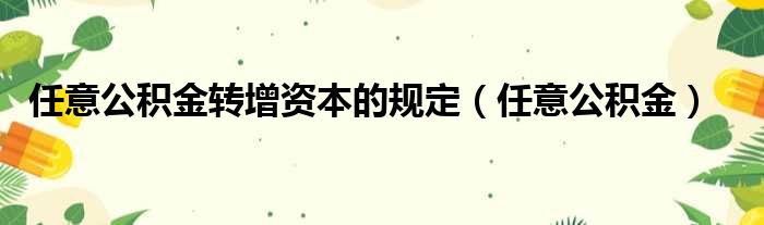 导读 大家好,今天小六子来为大家解答以下的问题,关于任意公积金转增资本的规定,任意公积金这个很多人还不知道,现在让我们一起来看看吧!1、任