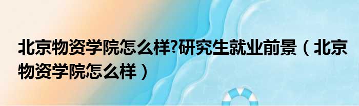 北京物资学院怎么样?研究生就业前景(北京物资学院怎么样)