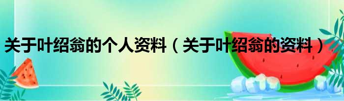 关于叶绍翁的个人资料(关于叶绍翁的资料)