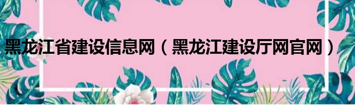 黑龙江省建设信息网(黑龙江建设厅网官网)