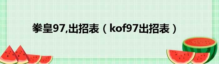 大家好,今天小六子来为大家解答以下的问题,关于拳皇97,出招表,kof97出招表这个很多人还不知道,现在让我们一起来看看吧!