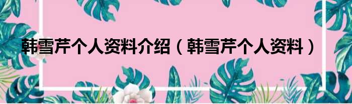 韩雪芹个人资料介绍(韩雪芹个人资料)