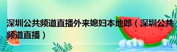 深圳公共频道直播外来媳妇本地郎(深圳公共频道直播)