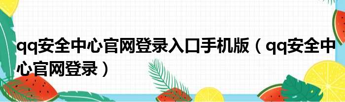qq安全中心官网登录入口手机版(qq安全中心官网登录)