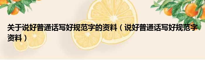 关于说好普通话写好规范字的资料(说好普通话写好规范字资料)
