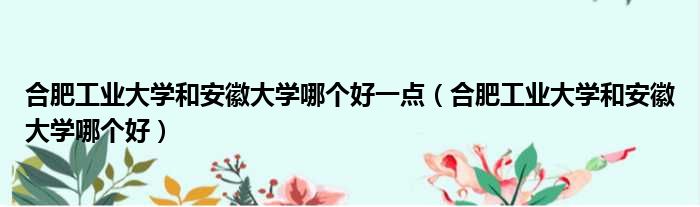 合肥工业大学和安徽大学哪个好一点(合肥工业大学和安徽大学哪个好)