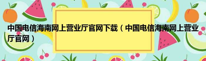 中国电信海南网上营业厅官网下载(中国电信海南网上营业厅官网)