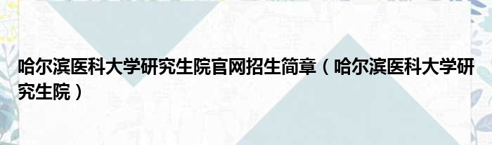 哈尔滨医科大学研究生院官网招生简章(哈尔滨医科大学研究生院)
