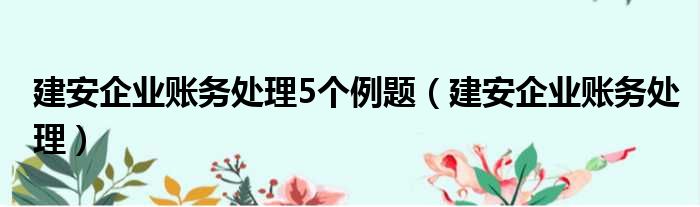 大家好,今天小六子来为大家解答以下的问题,关于建安企业账务处理5个例题,建安企业账务处理这个很多人还不知道,现在让我们一起来看看吧!