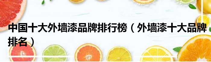 中国十大外墙漆品牌排行榜(外墙漆十大品牌排名)