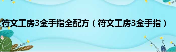 大家好,今天小六子来为大家解答以下的问题,关于符文工房3金手指全配方,符文工房3金手指这个很多人还不知道,现在让我们一起来看看吧!