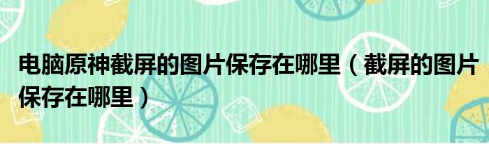 电脑原神截屏的图片保存在哪里(截屏的图片保存在哪里)