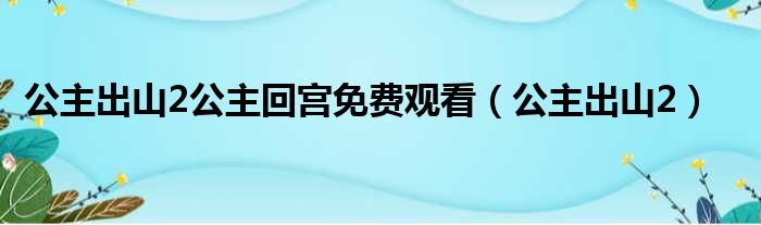 大家好,今天小六子来为大家解答以下的问题,关于公主出山2公主回宫免费观看,公主出山2这个很多人还不知道,现在让我们一起来看看吧!
