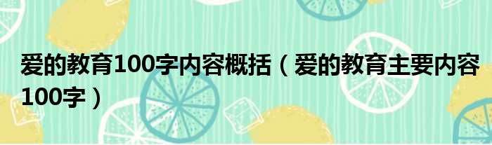 导读 大家好,今天小六子来为大家解答以下的问题,关于爱的教育100字内容概括,爱的教育主要内容100字这个很多人还不知道,现在让我们一起来看看