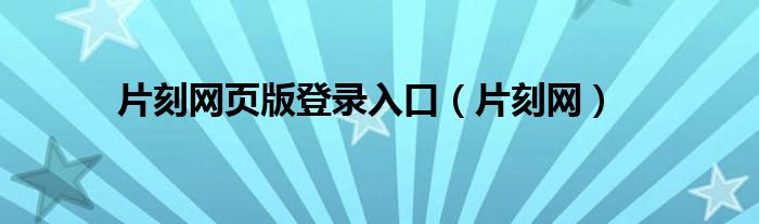 片刻网页版登录入口(片刻网)