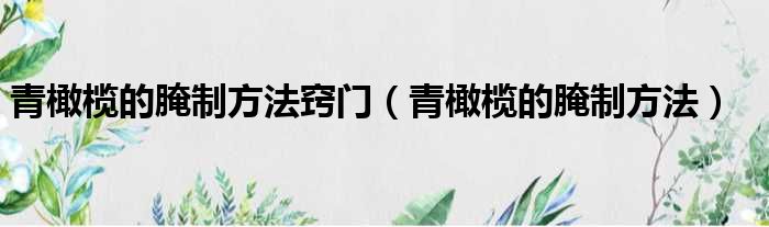 青橄榄的腌制方法窍门(青橄榄的腌制方法)