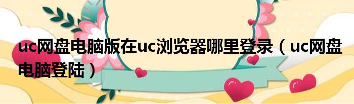 导读 大家好,今天小六子来为大家解答以下的问题,关于uc网盘电脑版在uc浏览器哪里登录,uc网盘电脑登陆这个很多人还不知道,现在让我们一起来看