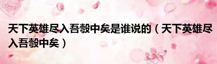 导读 大家好,今天小六子来为大家解答以下的问题,关于天下英雄尽入吾彀中矣是谁说的,天下英雄尽入吾彀中矣这个很多人还不知道,现在让我们一起
