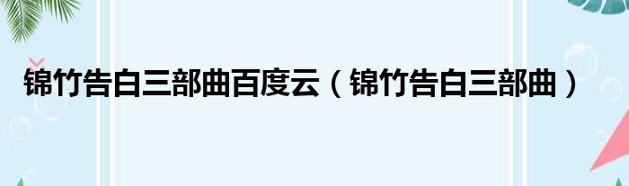 锦竹告白三部曲百度云(锦竹告白三部曲)
