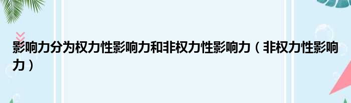 影响力分为权力性影响力和非权力性影响力(非权力性影响力)