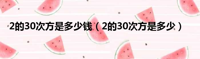 大家好,今天小六子来为大家解答以下的问题,关于2的30次方是多少钱,2的30次方是多少这个很多人还不知道,现在让我们一起来看看吧!