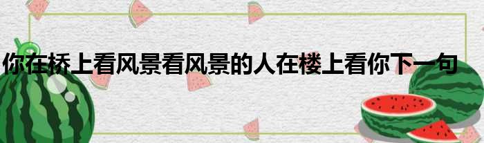 大家好,今天小六子来为大家解答以下的问题,关于你在桥上看风景看风景的人在楼上看你下一句这个很多人还不知道,现在让我们一起来看看吧!