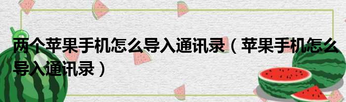 导读 大家好,今天小六子来为大家解答以下的问题,关于两个苹果手机怎么导入通讯录,苹果手机怎么导入通讯录这个很多人还不知道,现在让我们一起