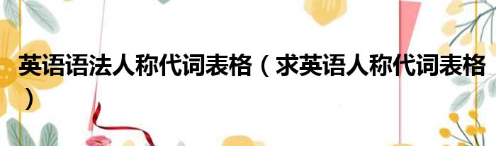 导读 大家好,今天小六子来为大家解答以下的问题,关于英语语法人称代词表格,求英语人称代词表格这个很多人还不知道,现在让我们一起来看看吧!1