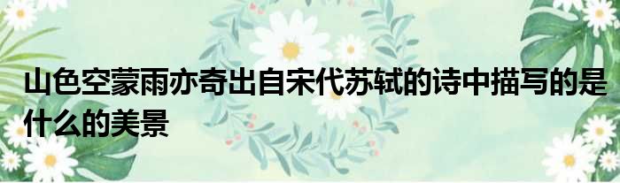 导读 大家好,今天小六子来为大家解答以下的问题,关于山色空蒙雨亦奇出自宋代苏轼的诗中描写的是什么的美景这个很多人还不知道,现在让我们一起