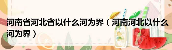 河南省河北省以什么河为界(河南河北以什么河为界)