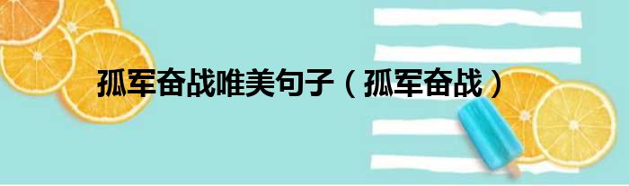 导读 大家好,今天小六子来为大家解答以下的问题,关于孤军奋战唯美句子,孤军奋战这个很多人还不知道,现在让我们一起来看看吧!1、奋战:尽全力