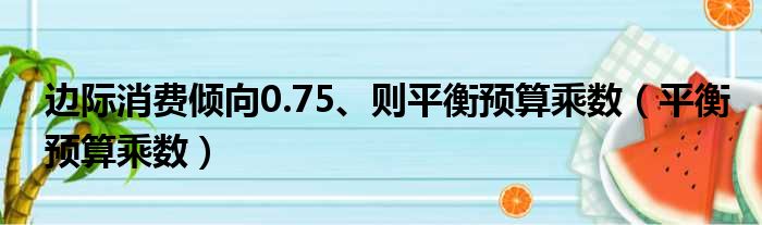 导读 大家好,今天小六子来为大家解答以下的问题,关于边际消费倾向0 75、则平衡预算乘数,平衡预算乘数这个很多人还不知道,现在让我们一起来看